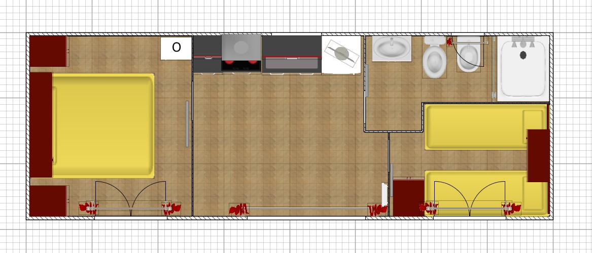 Trilocale di circa 24 mq, 1/5 posti letto.